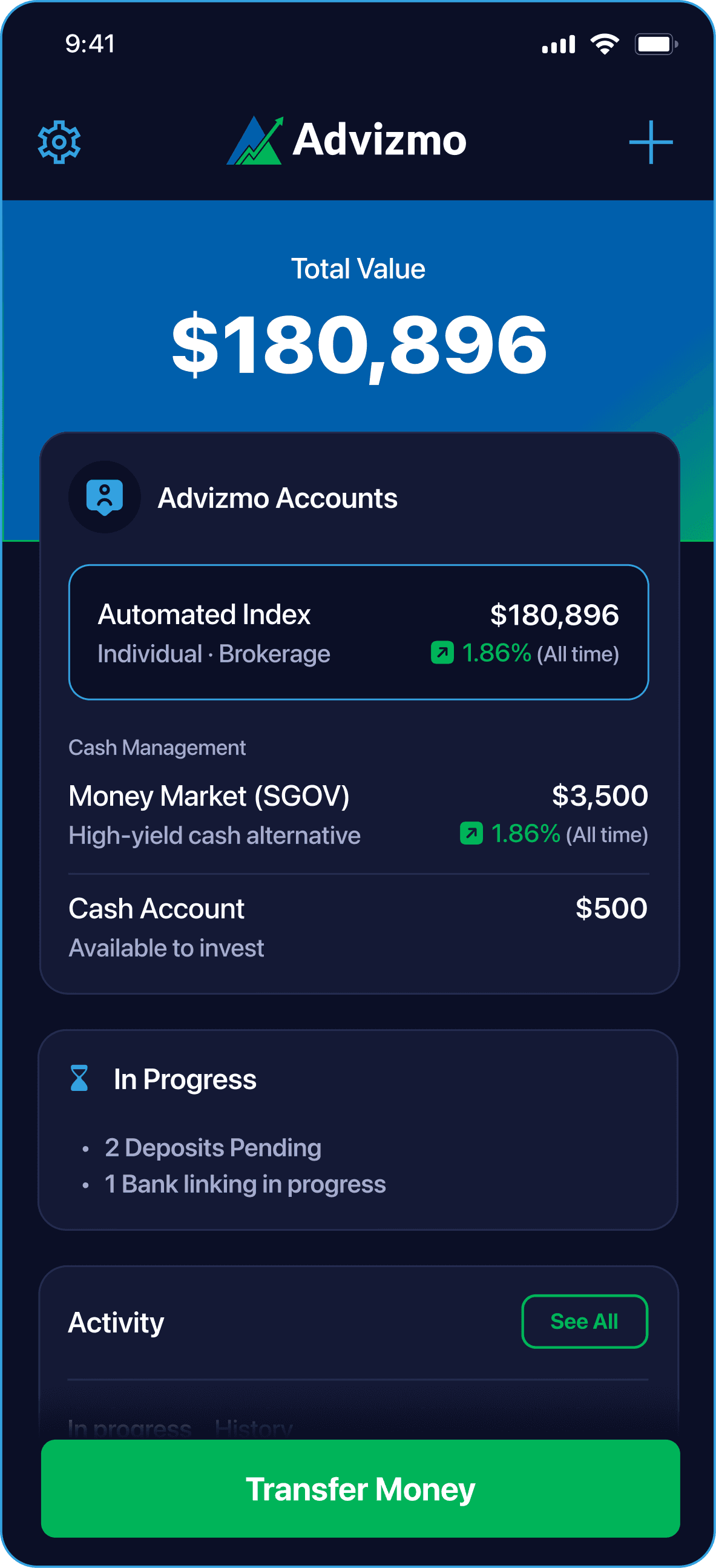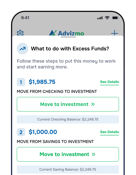 Advizmo helps you achieve your savings goals, then guides you toward smart investing, in that order.